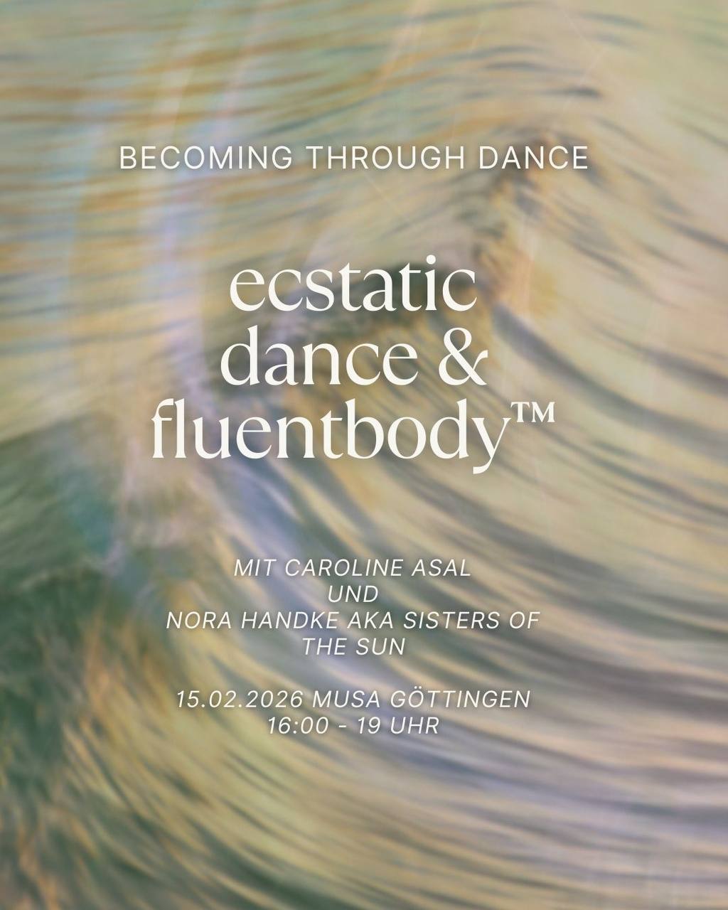 Für die beiden Raumhalterinnen fließen hier ihre Arbeitsweisen zusammen, für Teilnehmende bietet sich eine Möglichkeit, Fluentbody und Ecstatic Dance in einem gemeinsamen, lebendigen Feld zu erleben.