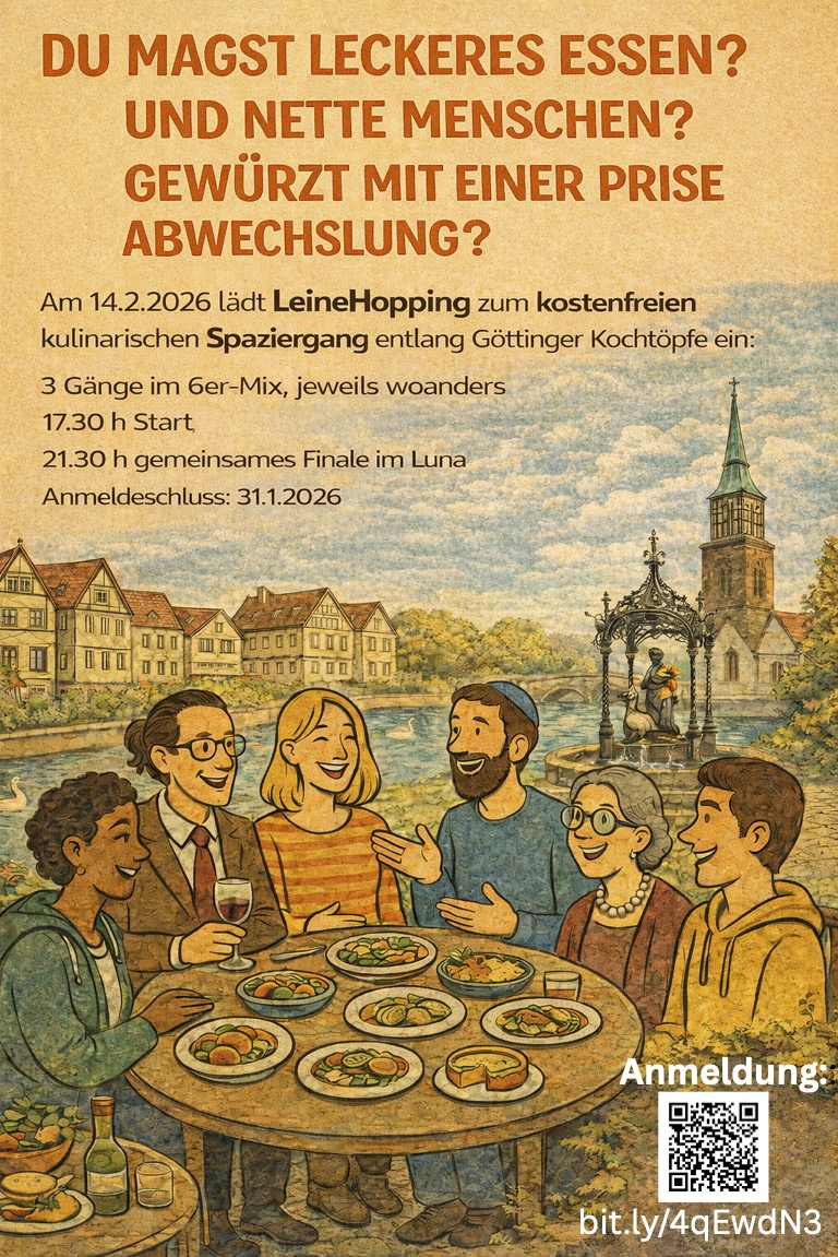 Verena, Andreas und Knut liegen ihre jeweiligen Stadtviertel rund um die Leine und die Südstadt am Herzen. Inspiriert von kleinen, netten, beiläufigen Situationen der nachbarschaftlichen Begegnung organisieren die drei ein Dinner Hopping in Göttingen, das nach dem Zufallsprinzip Menschen aus der Nachbarschaft zusammenwürfelt.